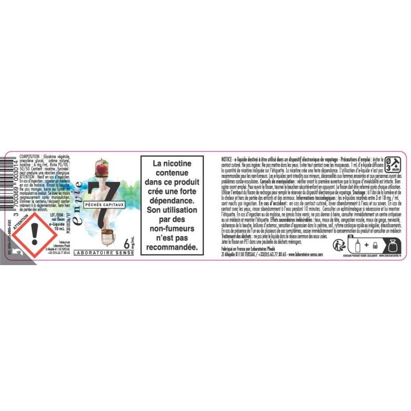 Le Laboratoire Sense a des compétences avancées en toxicologie et est un des seuls fabricants d’e- liquides qui crée ses propres arômes, assurant ainsi une sécurité optimale pour les vapoteurs. Avec 25 ans de savoir-faire aromatique et une forte spécialisation dans l’arôme naturel, nous avons d’ailleurs fait le choix de vous proposer 3 gammes exclusivement en arômes naturels (Sense/Sense Insolite/ 7 péchés capitaux).