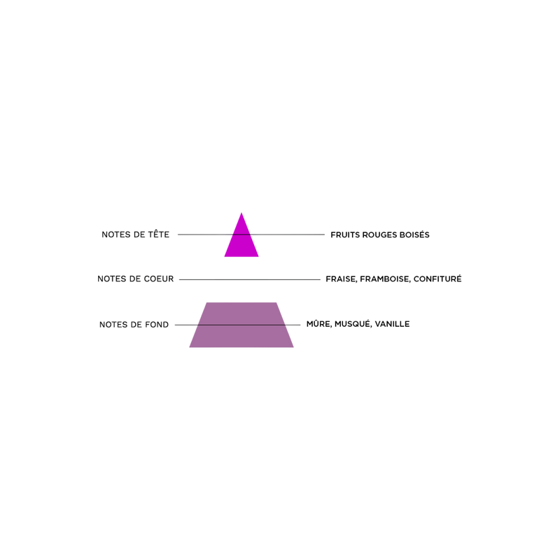 Grâce au savoir-faire de nos aromaticien(ne)s, vous retrouverez en bouche une délicieuse saveur de fraise, framboise et mûre.