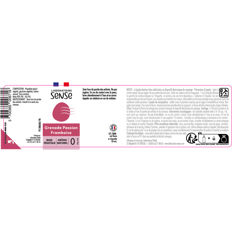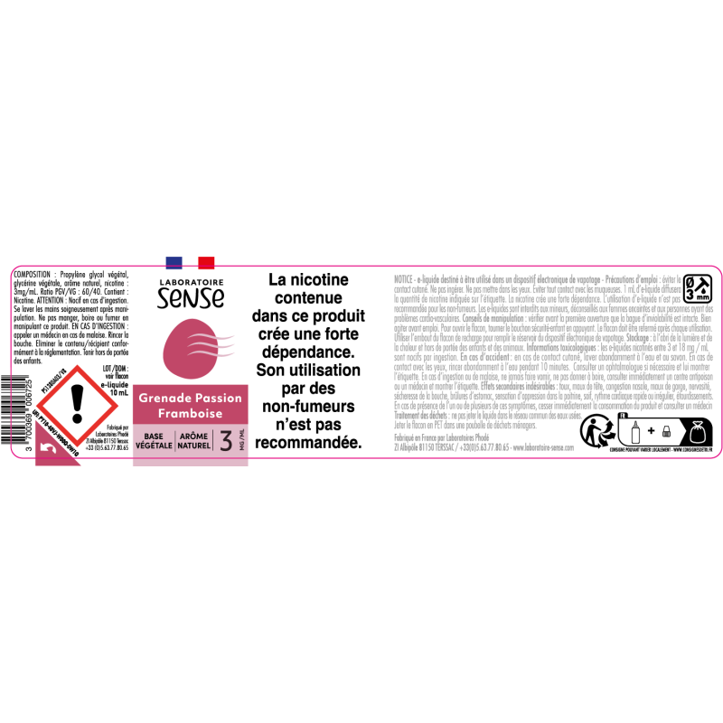 Les e-liquides Laboratoire Sense sont fabriqués à partir d'une base d'origine végétale et d'arômes créés en France.