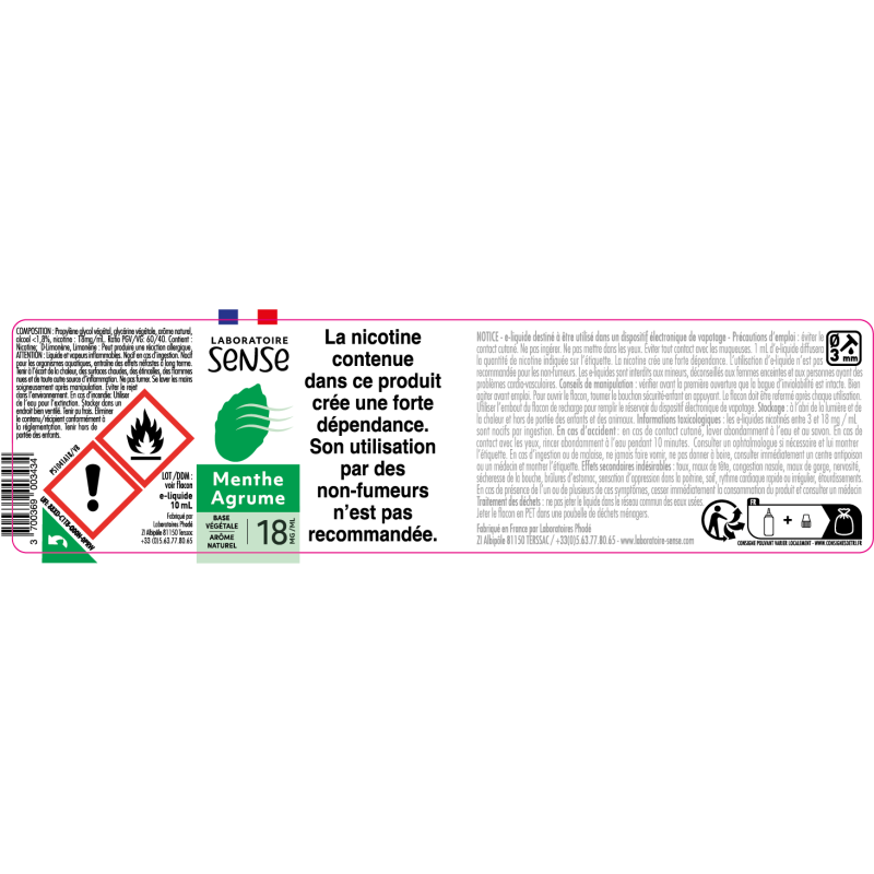 Le Laboratoire Sense a des compétences avancées en toxicologie et est un des seuls fabricants d’e- liquides qui crée ses propres arômes, assurant ainsi une sécurité optimale pour les vapoteurs. Avec 25 ans de savoir-faire aromatique et une forte spécialisation dans l’arôme naturel, nous avons d’ailleurs fait le choix de vous proposer 3 gammes exclusivement en arômes naturels (Sense/Sense Insolite/ 7 péchés capitaux).