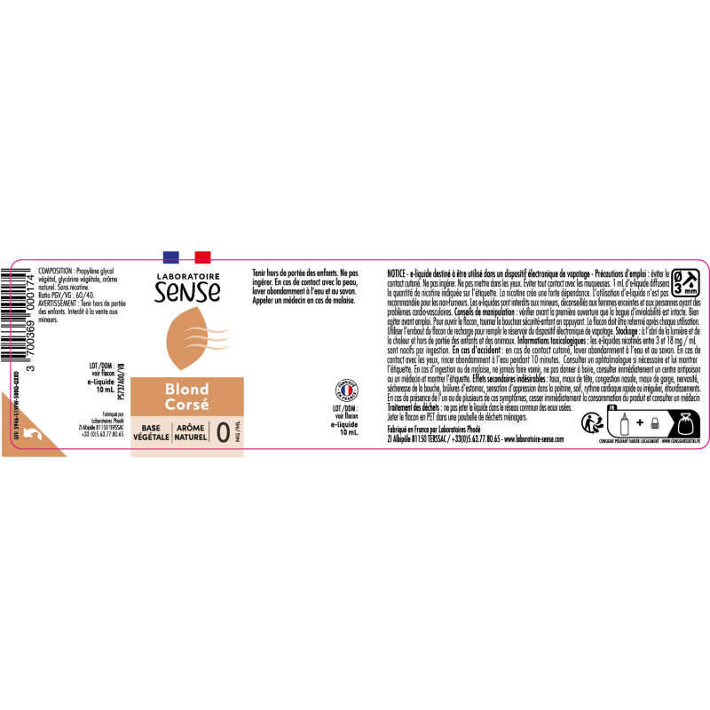 Le Laboratoire Sense a des compétences avancées en toxicologie et est un des seuls fabricants d’e- liquides qui crée ses propres arômes, assurant ainsi une sécurité optimale pour les vapoteurs. Avec 25 ans de savoir-faire aromatique et une forte spécialisation dans l’arôme naturel, nous avons d’ailleurs fait le choix de vous proposer 3 gammes exclusivement en arômes naturels (Sense/Sense Insolite/ 7 péchés capitaux).
