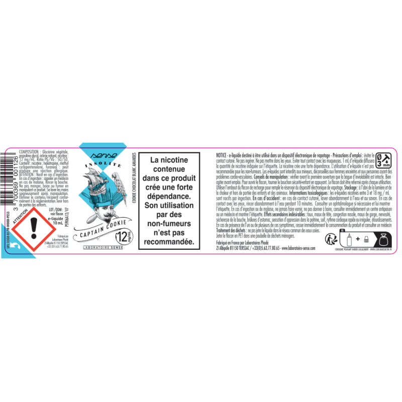Au dos de chaque étiquette, se trouve une notice d'information à usage des consommateurs. L'Etiquetage est conforme au règlement CLP 1272/2008/CE relatif à la classification et à l’étiquetage des mélanges. Il est également conforme à la Directive européenne 2014/40/UE.