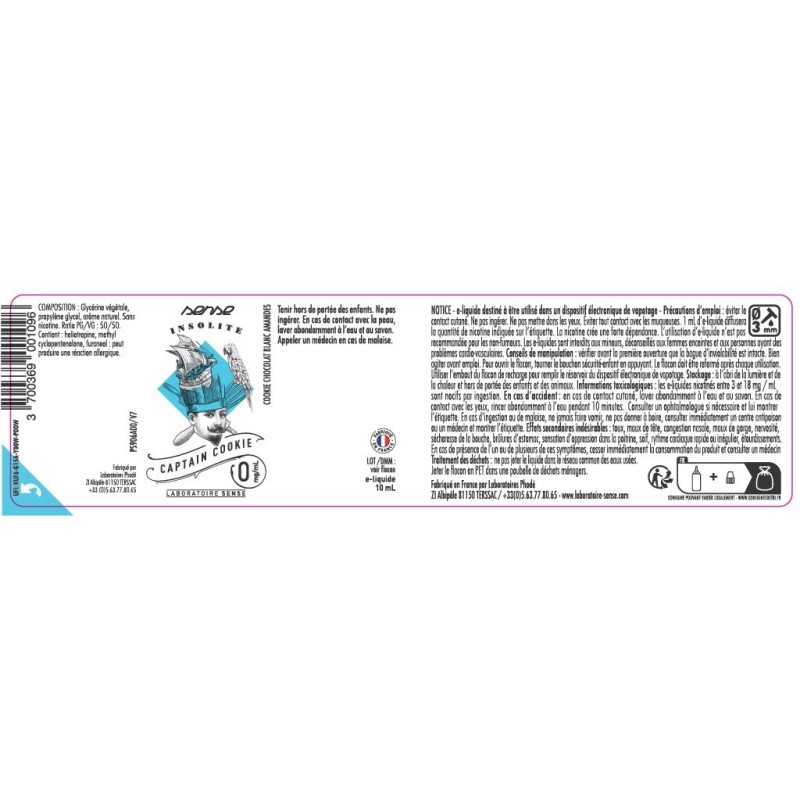 Les e-liquides Captain Cookie possèdent des saveurs de cookie chocolat blanc et amandes.