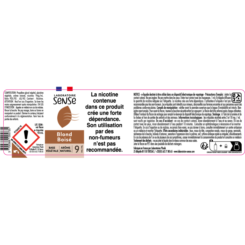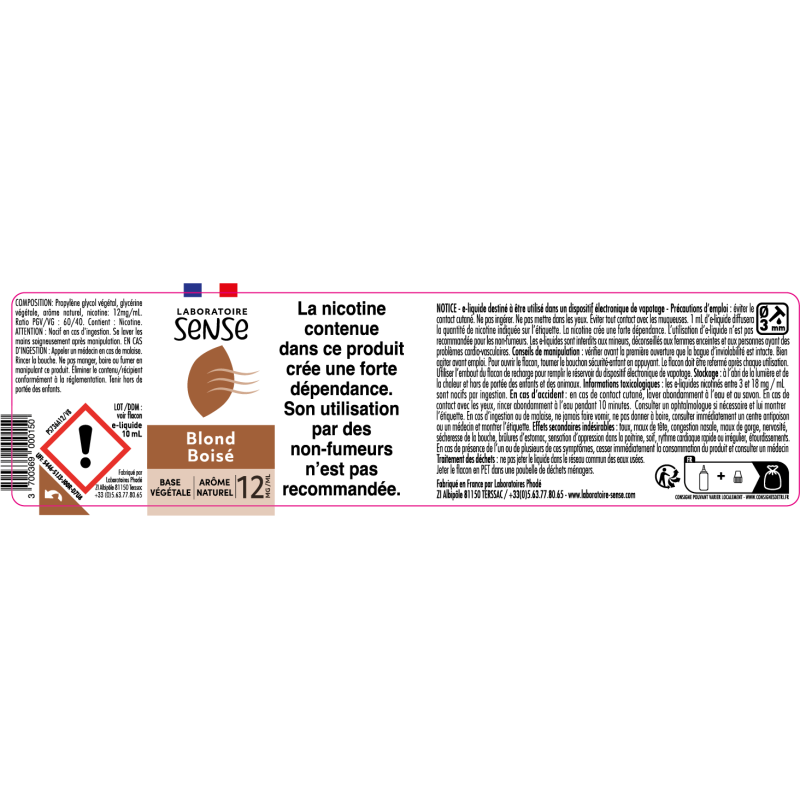 Le Laboratoire Sense a des compétences avancées en toxicologie et est un des seuls fabricants d’e- liquides qui crée ses propres arômes, assurant ainsi une sécurité optimale pour les vapoteurs. Avec 25 ans de savoir-faire aromatique et une forte spécialisation dans l’arôme naturel, nous avons d’ailleurs fait le choix de vous proposer 3 gammes exclusivement en arômes naturels (Sense/Sense Insolite/ 7 péchés capitaux).